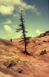 Topography of Phillip Island is forbidding, as it is surrounded by high cliffs and treacherous waters, with the only access point permitting a difficult climb up through a narrow valley to the main expanse of the island. … the highest point, 286 m asl, sits on a small peninsula reached only by traversing a long, narrow knife edge with a sheer drop of 200 mon either side. Coyne’s book opens with an extensive description of the geological history of Phillip and the entire Norfolk group, including the fact that, intermittently, and at least as recently as 20,000 years ago, the entire group was part of a single, much larger island. This fact aids attempts to provide a reference for the Phillip Island restoration, as the entire biota was devastated by introduced mammals within a few years of Europeans first visiting the island in 1789. …